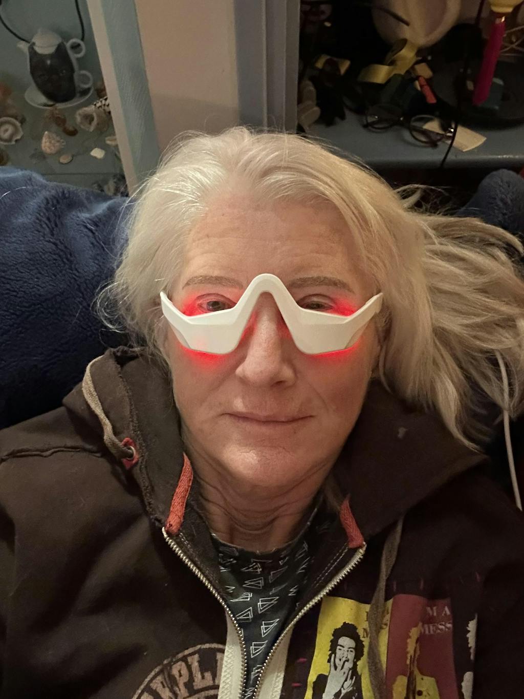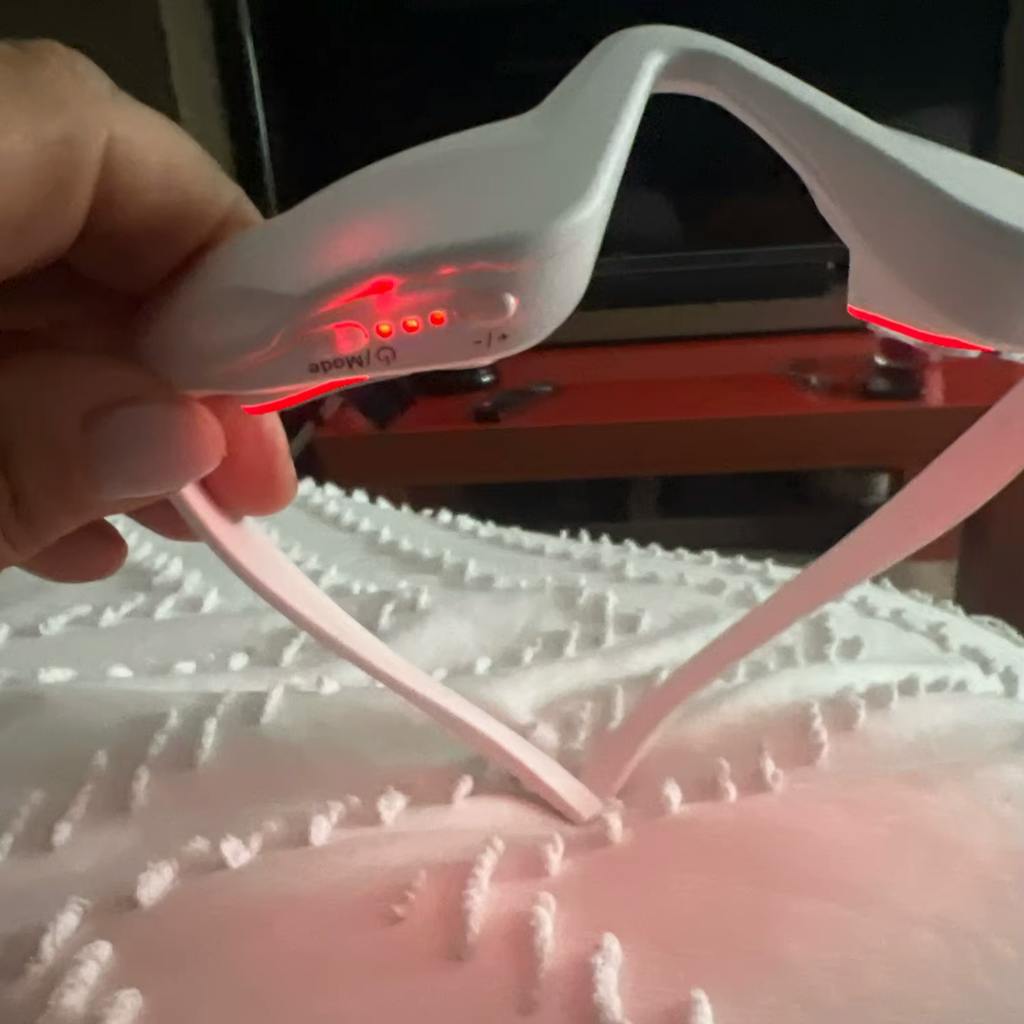 Je voelt een lichte warmte door de LED’s, ongeveer lichaamstemperatuur tot 40°C, vergelijkbaar met een aangenaam warm kompres. Het wordt niet heet als een lamp; juist laag-energetisch licht. De warmte is juist bedoeld om de doorbloeding te stimuleren en te ontspannen.