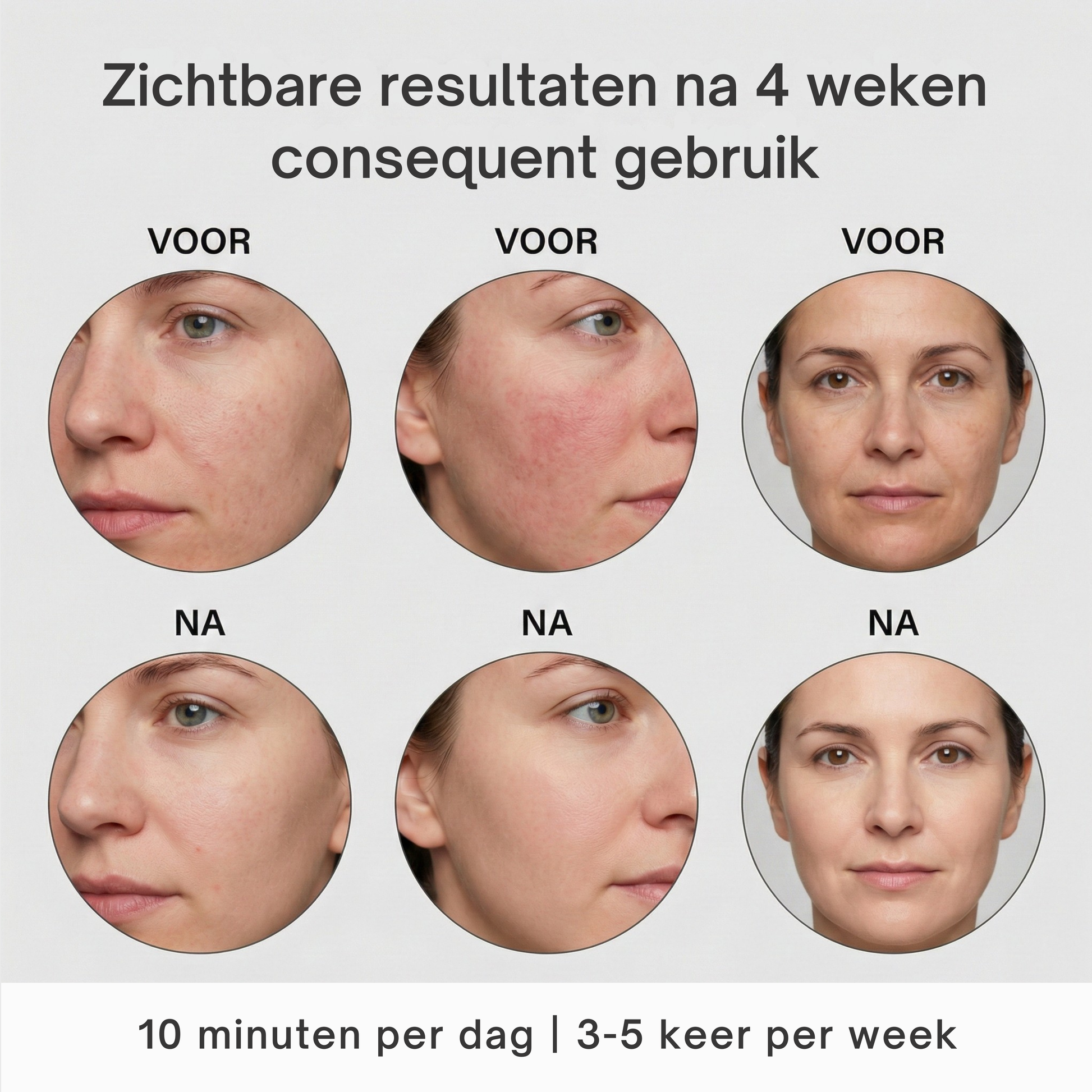 Sommige mensen zien na enkele sessies al een subtiele glow. Gemiddeld zie je na 3–4 weken, bij 3–5 sessies per week, duidelijkere veranderingen in huidstructuur, stevigheid en uitstraling. Klinische studies tonen aan dat rimpels duidelijk zijn verminderd en oogt het gezicht jonger. Ook rapporteert meer dan 90% van de gebruikers dat de algehele huidkwaliteit is verbeterd en de huid minder slap aanvoelt.